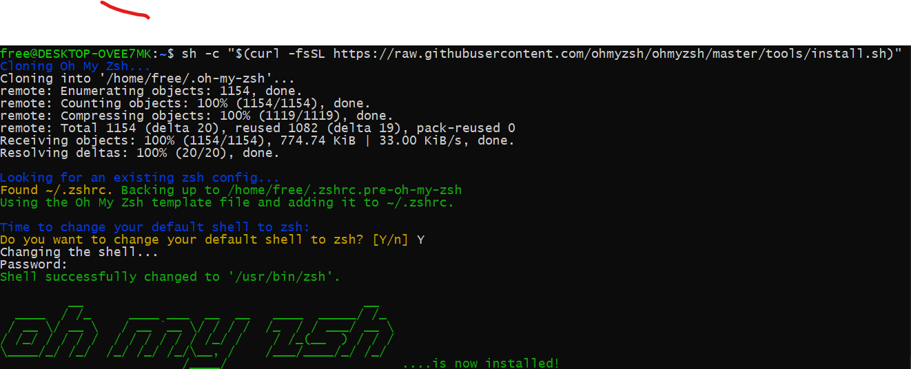 Let us then install oh-my-zsh, which we will need in order to level-up our zsh experience;